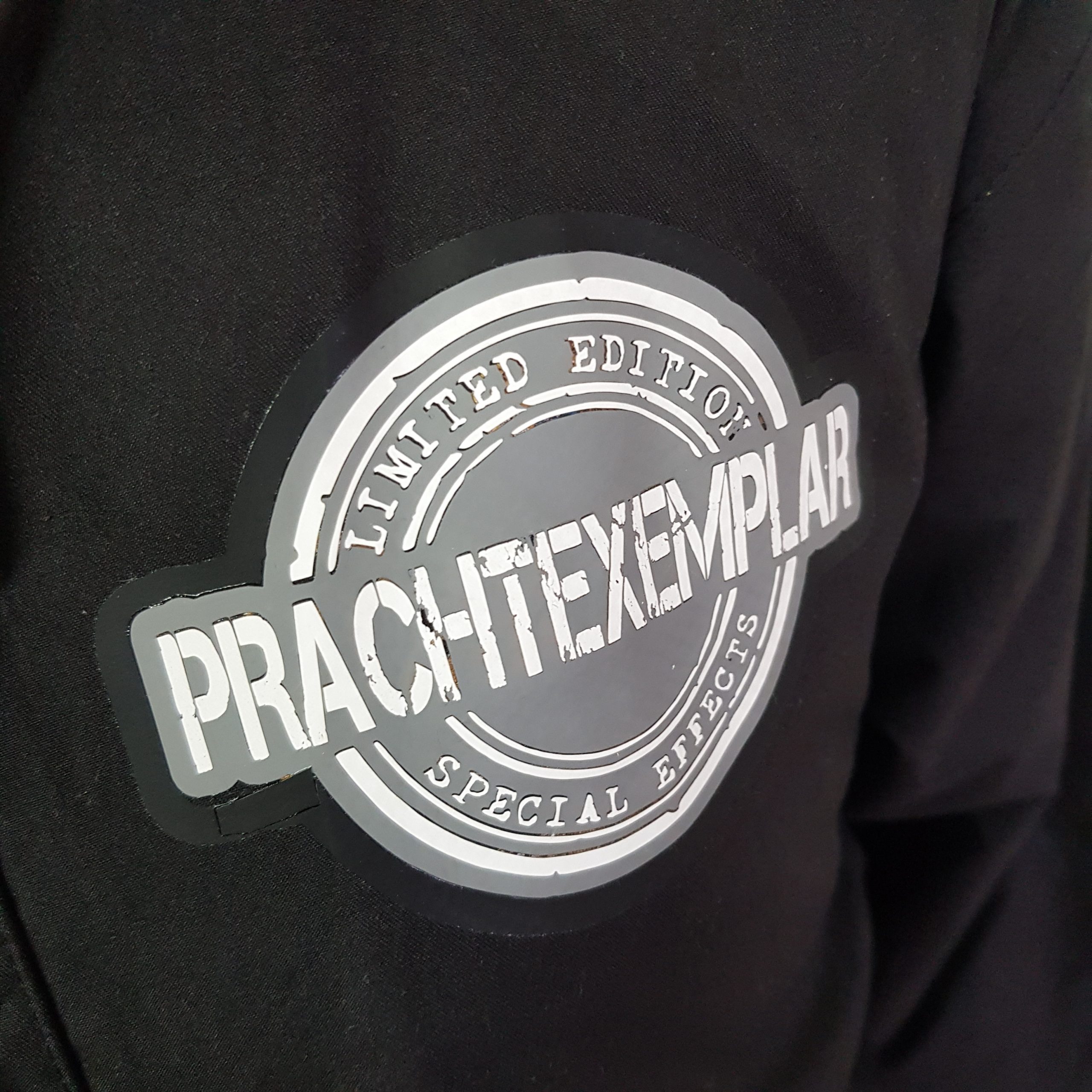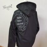 Diese Jacke hatte große Werbeaufdrucke, die ich mit Motiven und Sprüchen überplotten sollte.