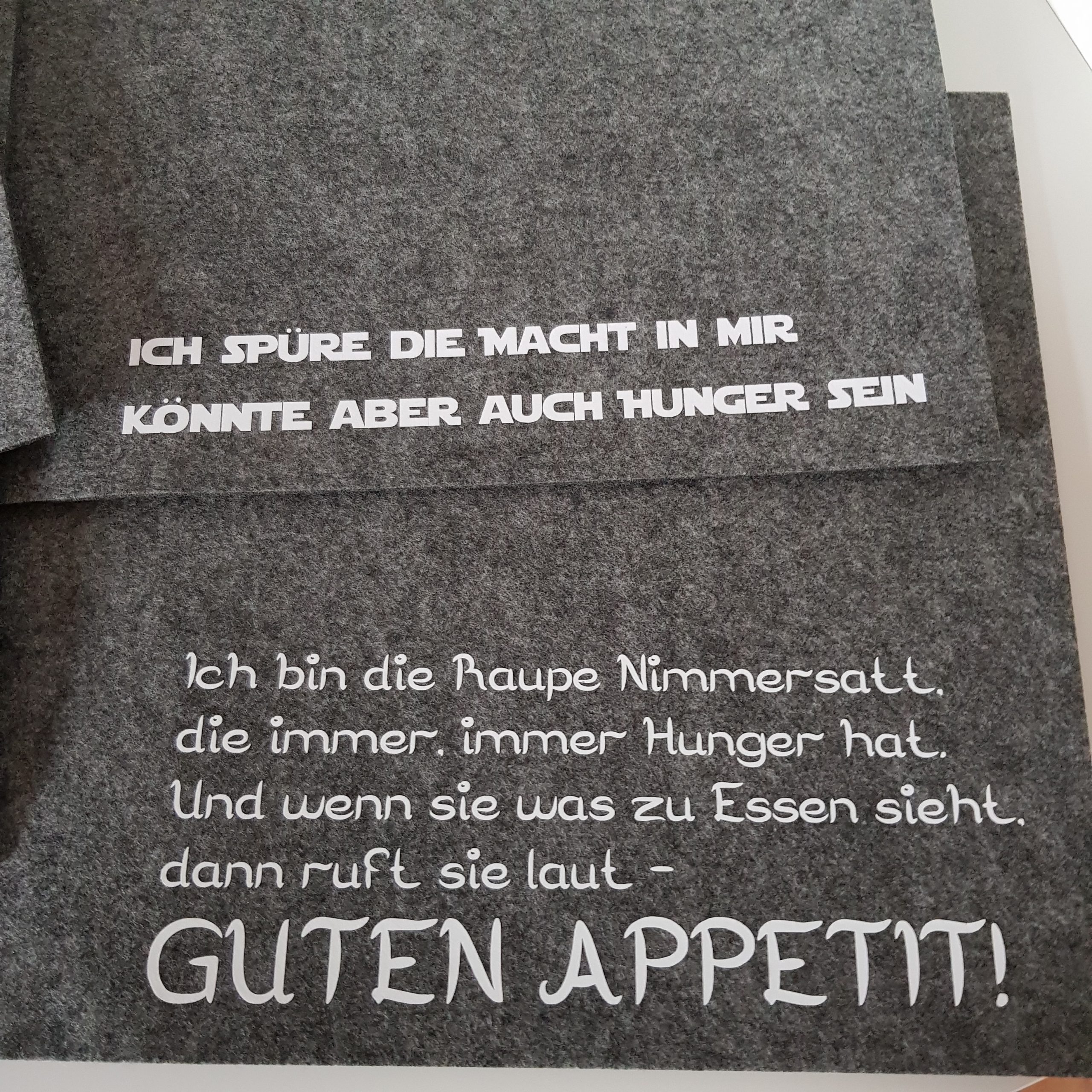 Diese Platzdeckchen aus Filz mit ein paar Sprüchen drauf, habe ich meinen Lieben zu Weihnachten geschenkt. 🎁