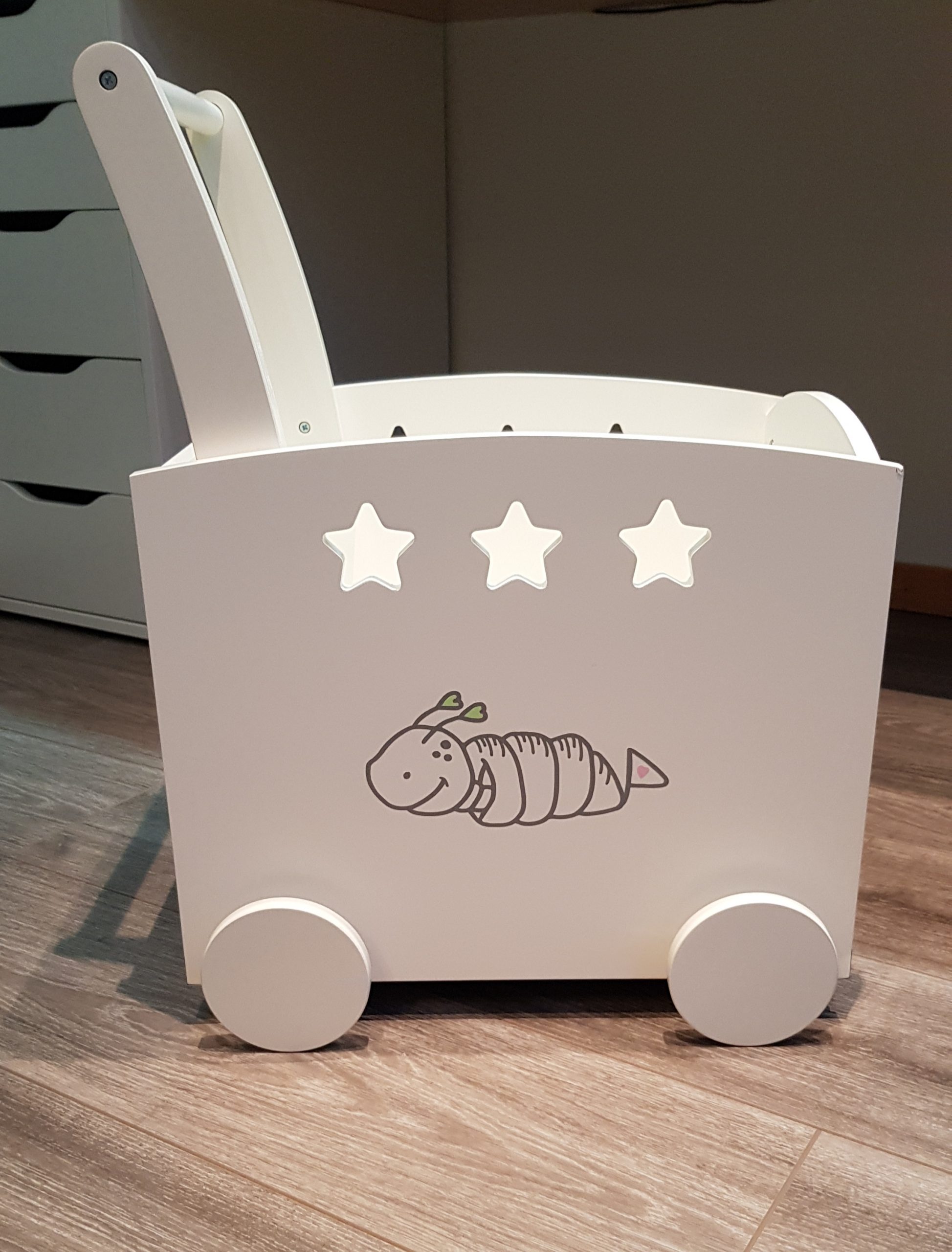 Diesen Spielwagen habe ich mit Motiven von Emmapünktchen beplottet.