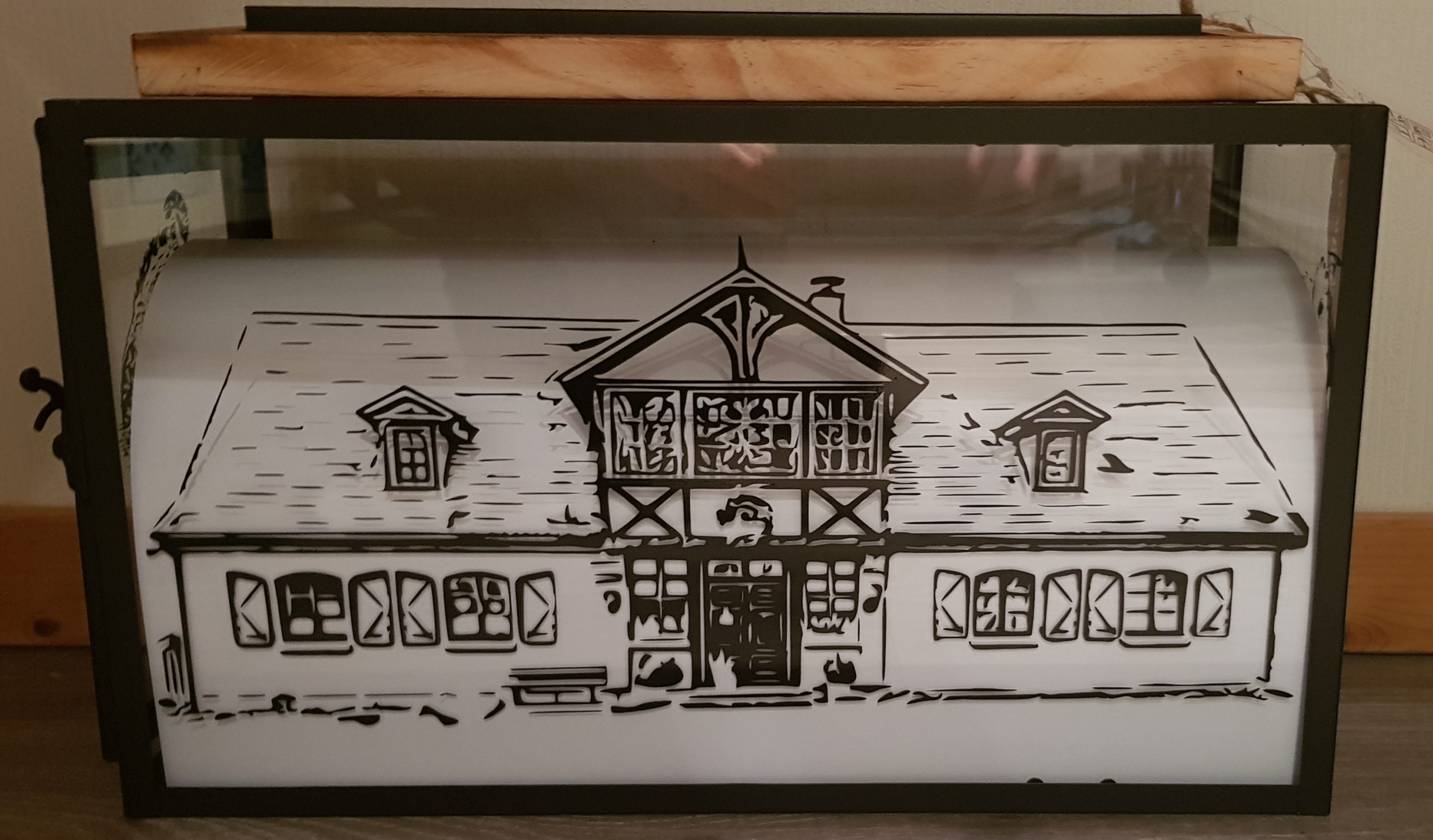 Bei dieser großen Laterne habe ich auf jede Seite ein persönliches Foto des Auftraggebers verarbeitet.