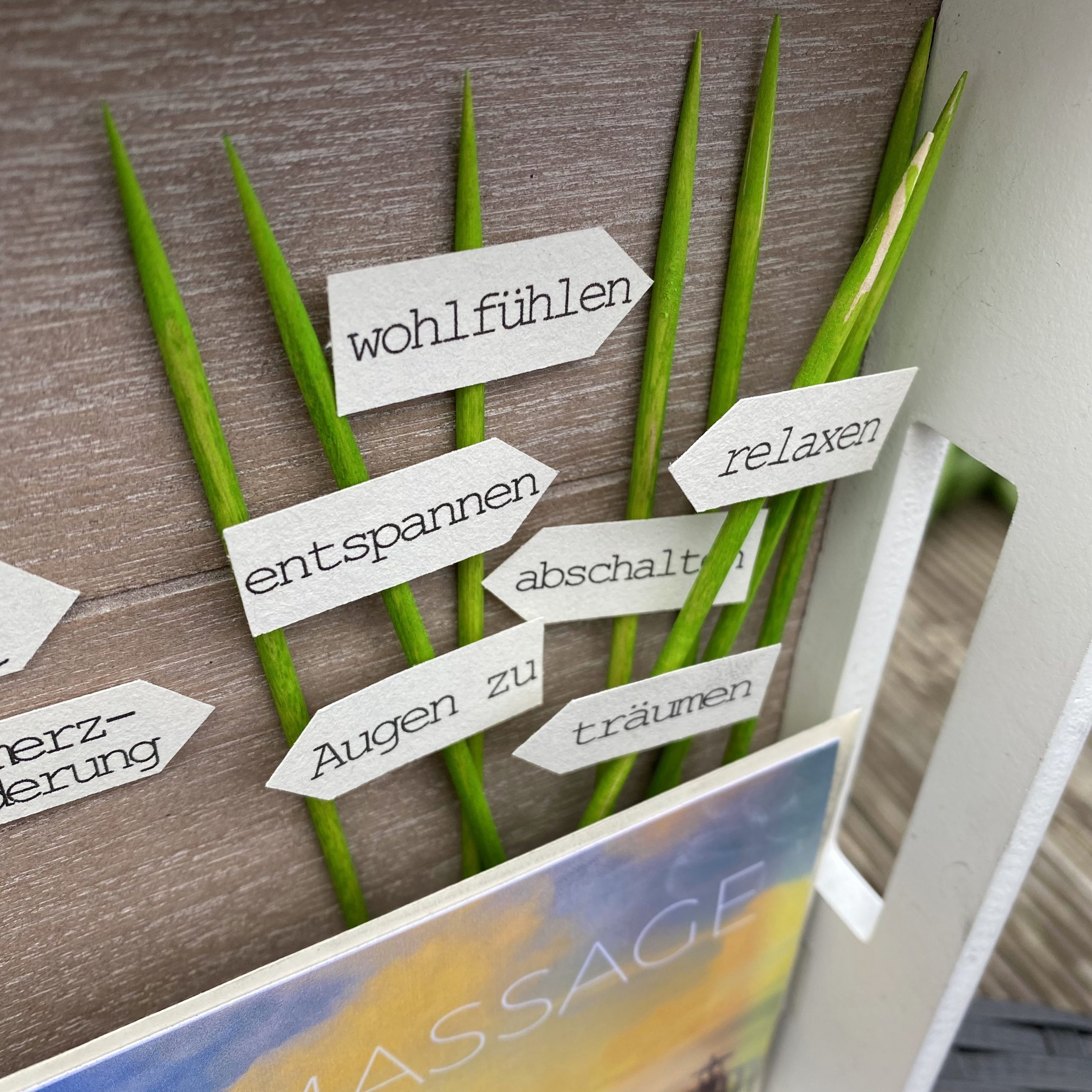 Wir haben ihr einen Gutschein für eine Thai Massage geschenkt, den ich etwas arangiert habe.