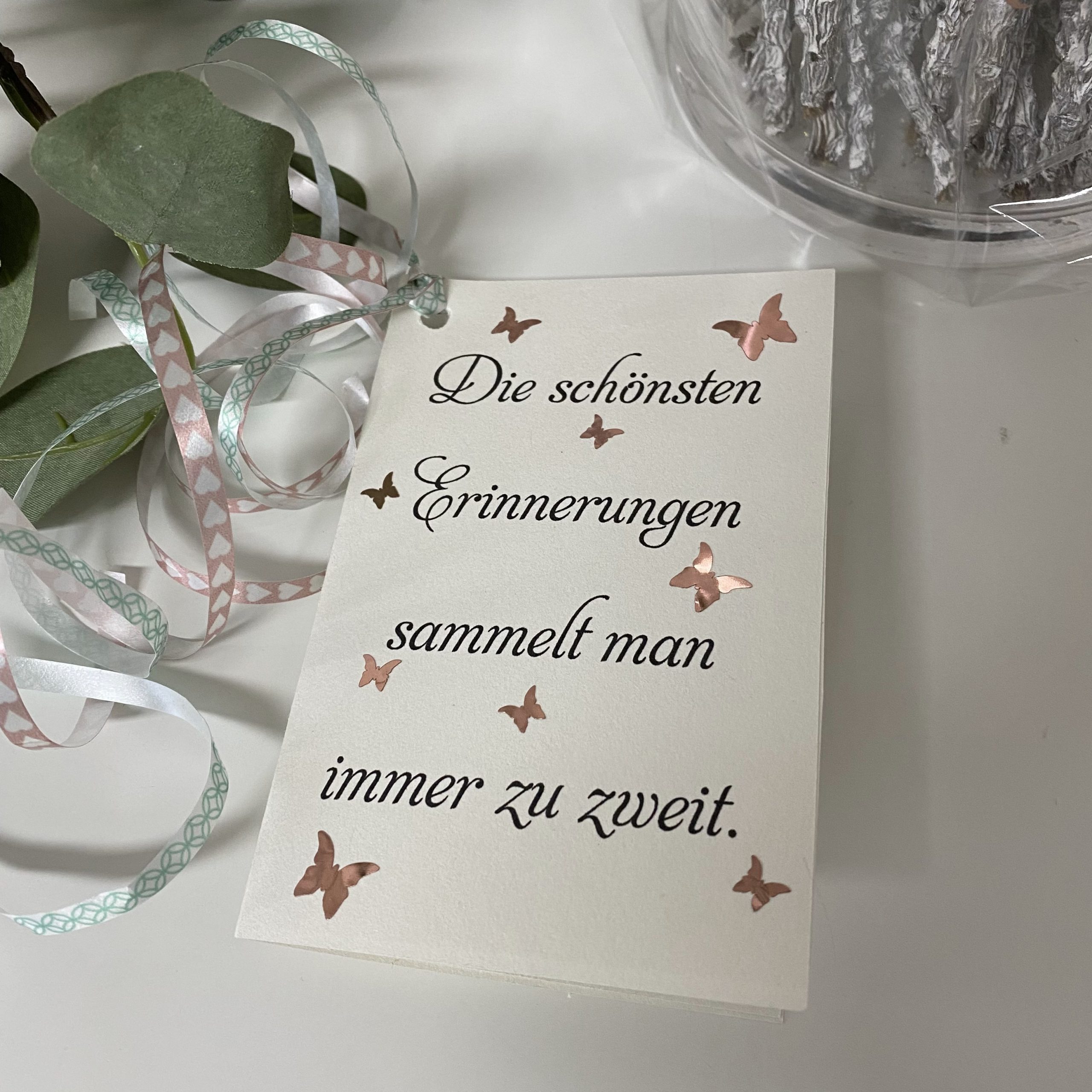 Deswegen habe ich diese kleine Vase personalisiert, dekoriert und mit einer kleinen Karte versehen.