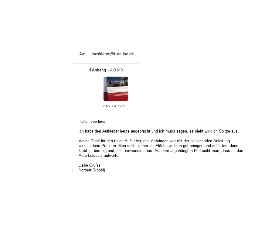 Wenn man so eine Rückmeldung zu einer Bestellung bekommt, dann geht das runter wie Butter!