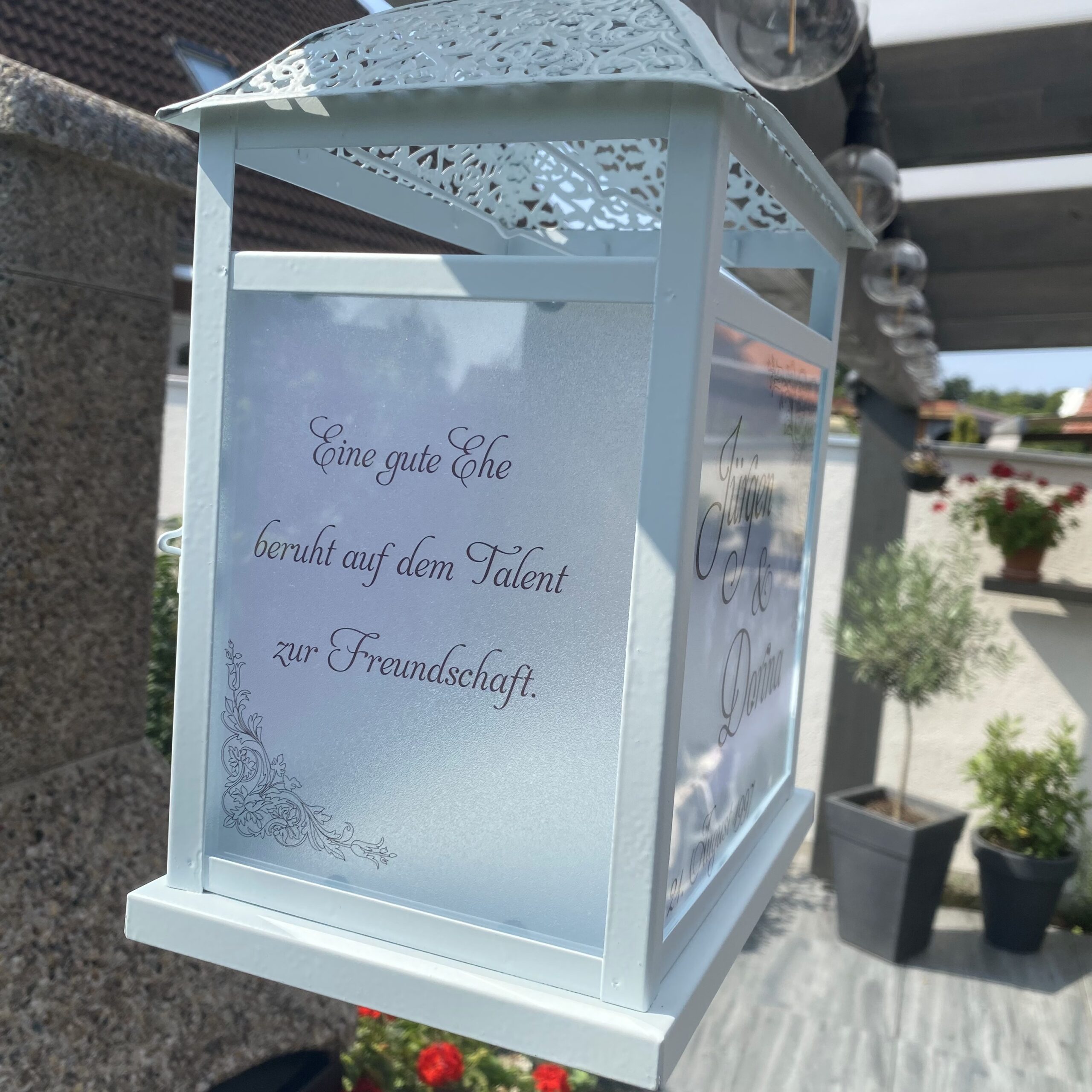 Diese Laterne ist ein Geschenk zur Silberhochzeit gewesen.