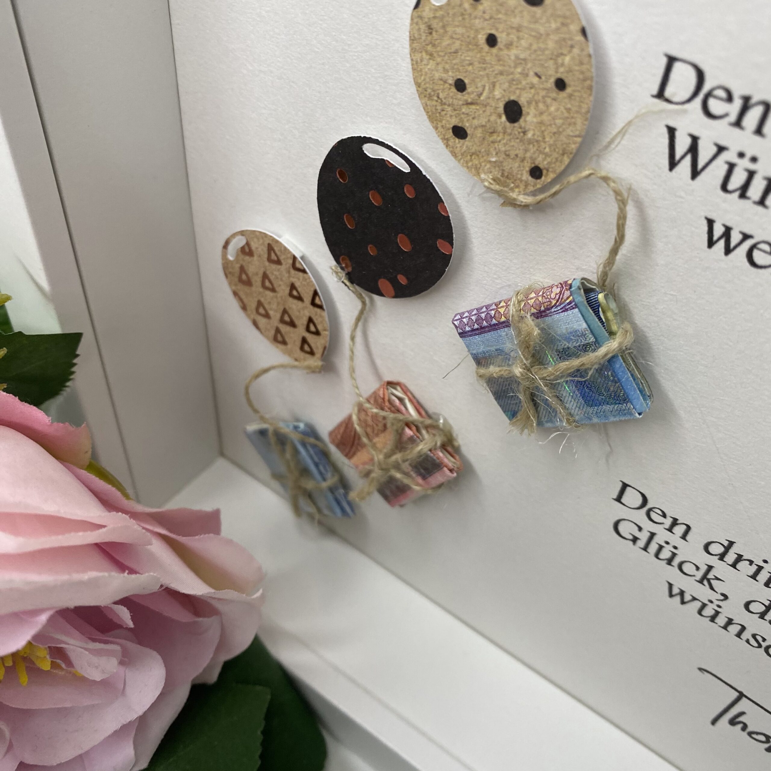 🎈 Zum 70. Geburtstag haben wir diese drei ,,Luftballons” in einem Bilderrahmen verschenkt.