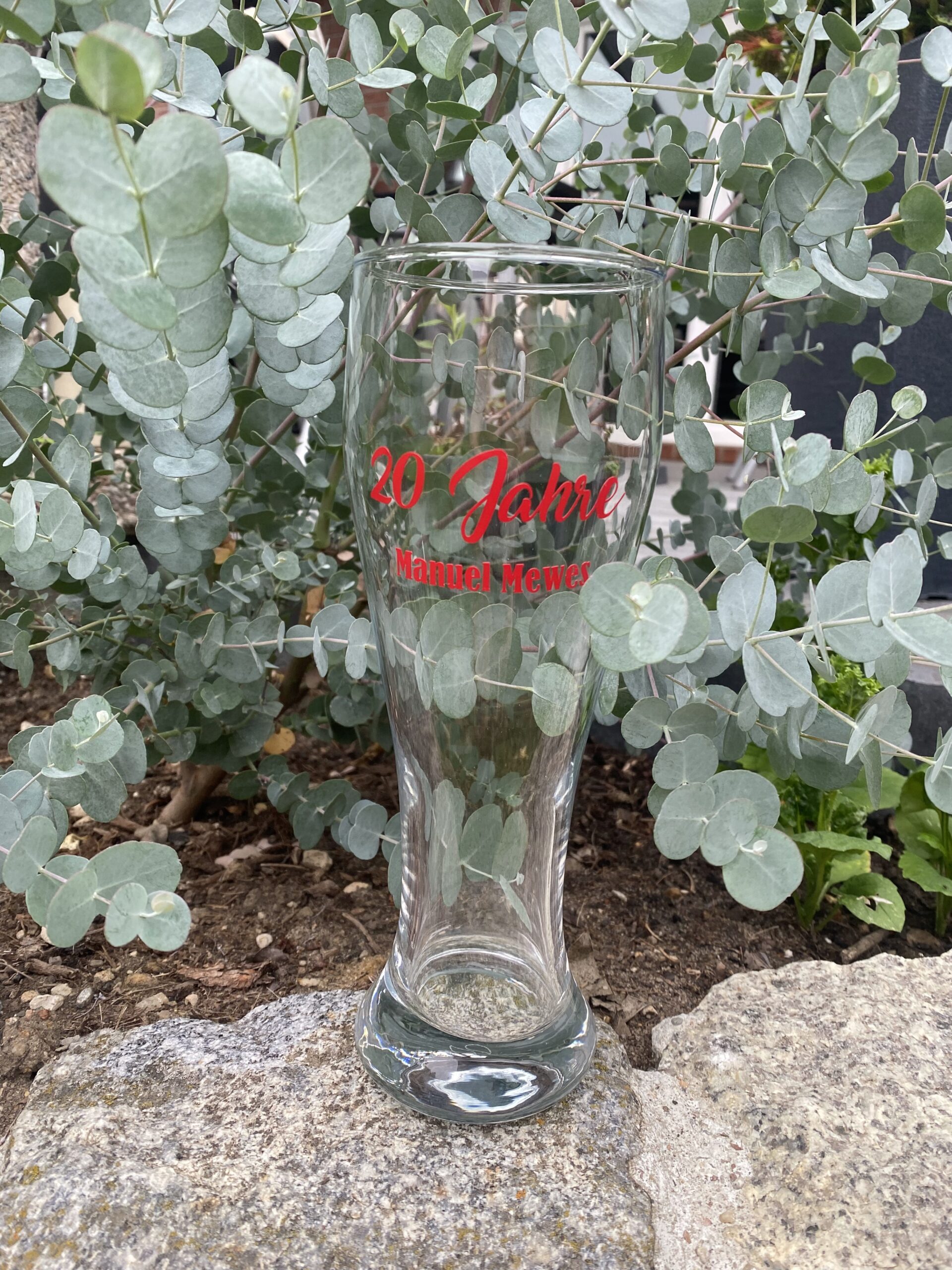 Zum Firmenjubiläum wurde dieses Bierglas personalisiert.