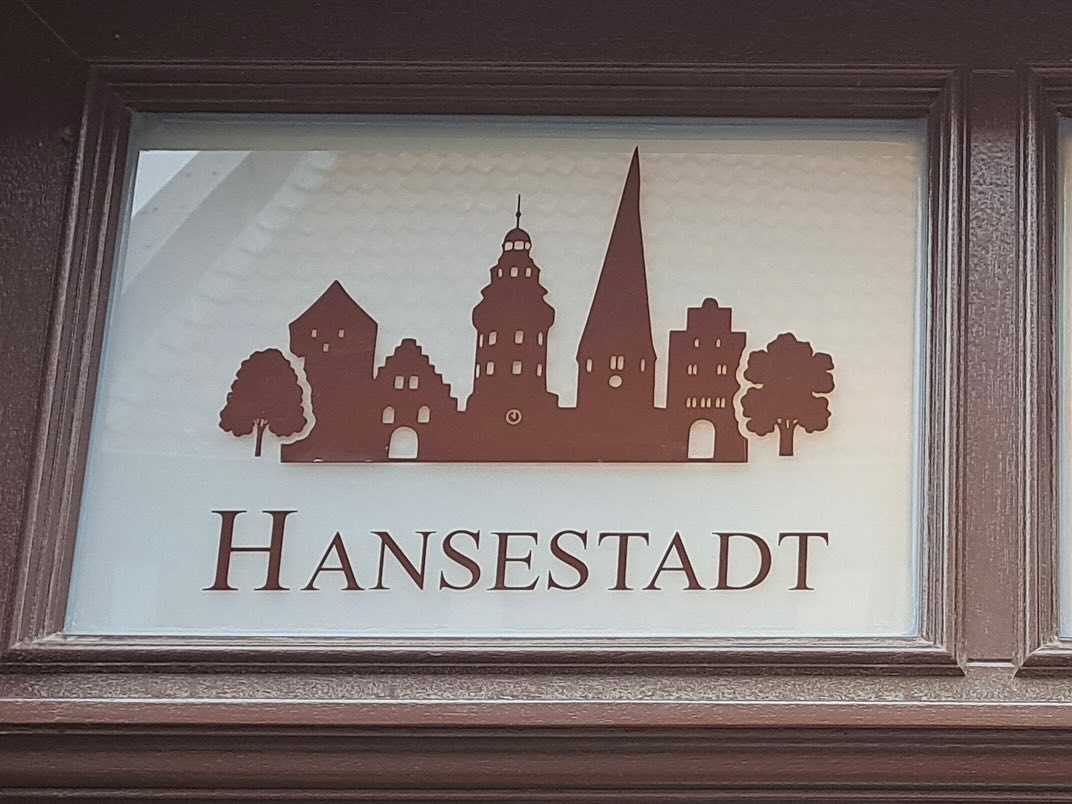 Auf Wunsch habe ich die Salzwedeler Skyline überarbeitet, um das Salzwedeler Jahngymnasium hinzuzufügen. Außerdem habe ich einige Bäume eingefügt, um die Szenerie lebendiger wirken zu lassen. Der aktualisierte Aufkleber musste in zwei Teilen erstellt werden, da die Scheibe über der Eingangstür, an der der Aufkleber angebracht werden sollte, zweigeteilt ist.