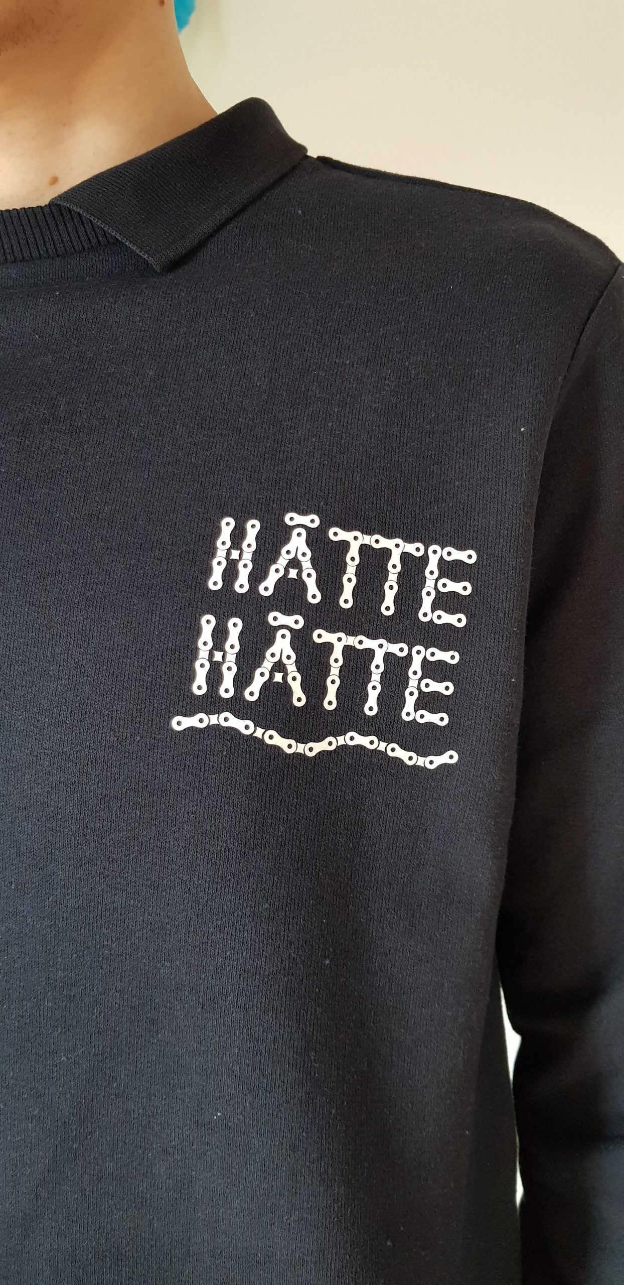Meinem ältesten Sohn habe ich diesen Spruch aus Kettengliedern ” gebastelt ” und auf einen Pulli geplottet.