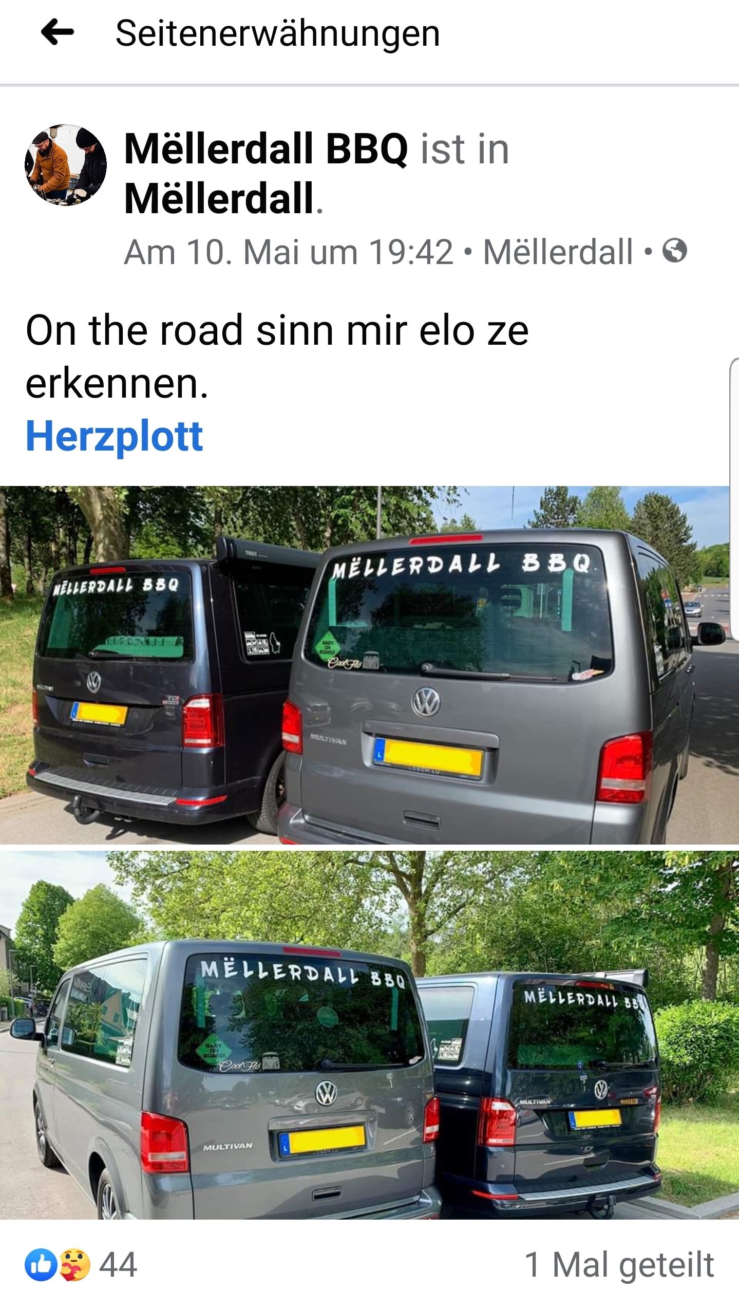 Die Griller aus Luxemburg machen nun mit diesen großen Schriftzügen auf ihren Bullis auf sich aufmerksam.