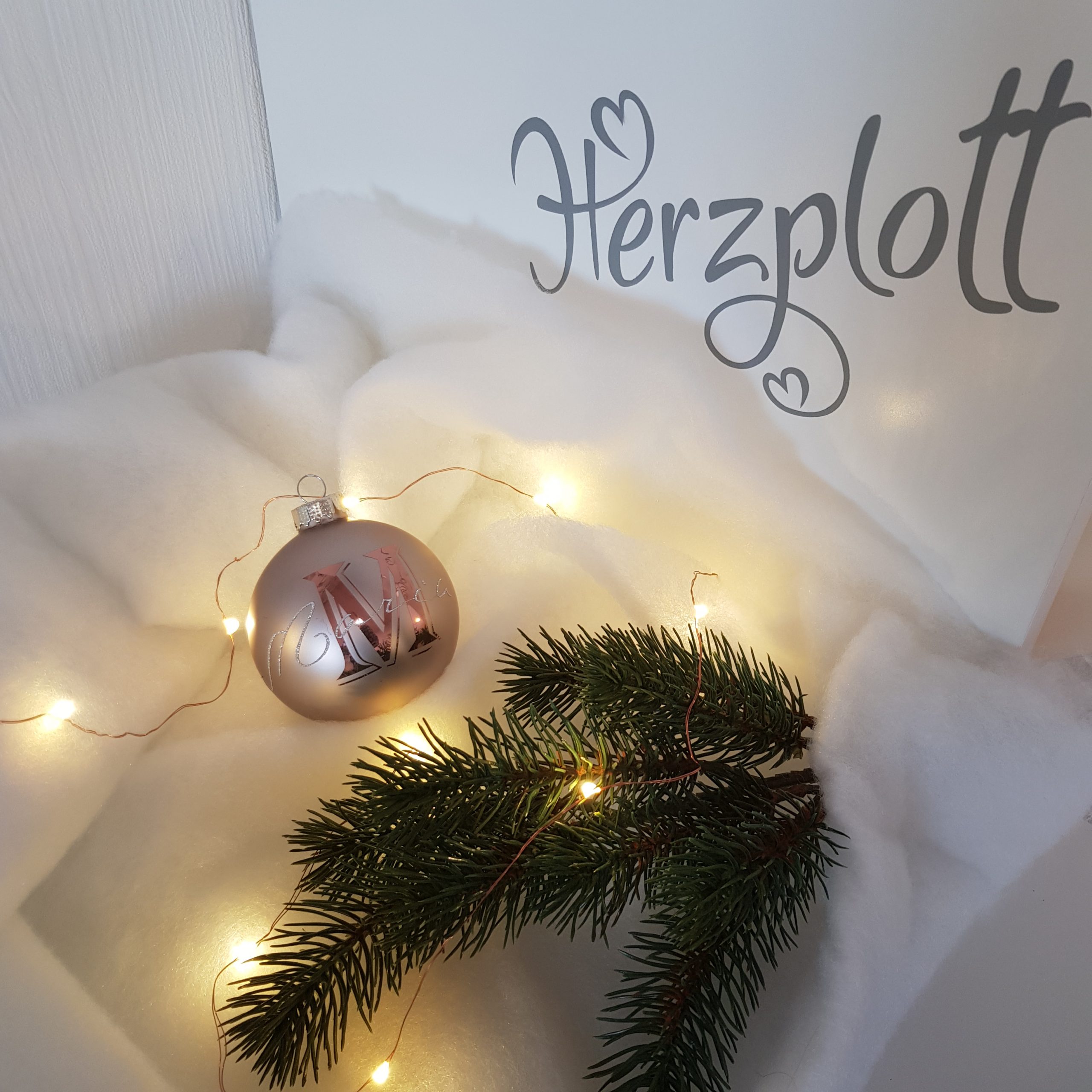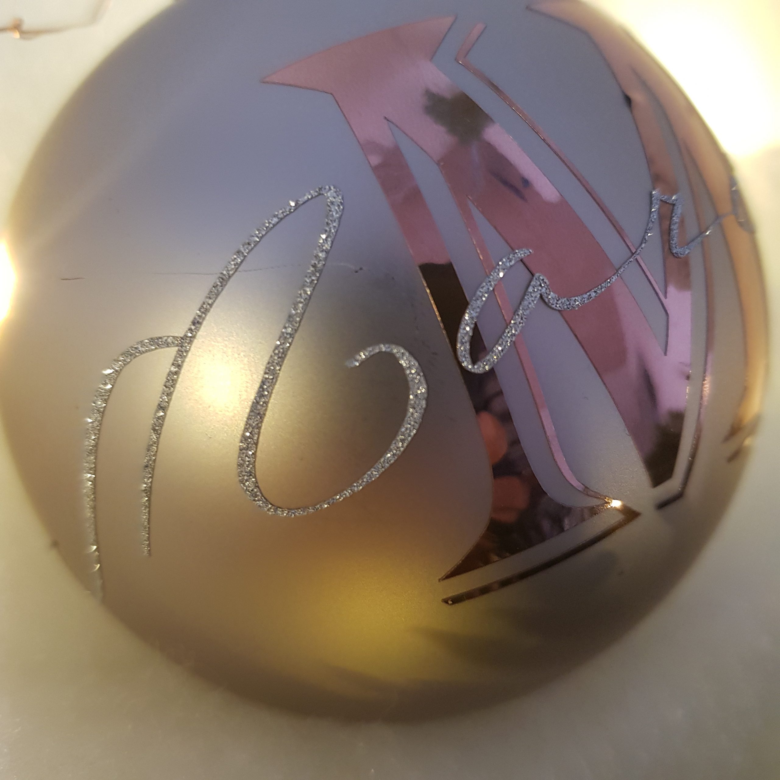 Maria bekommt diese Kugel in Metallic Rosé und silber Glitzerschrift geschenkt. Ein Träumchen!