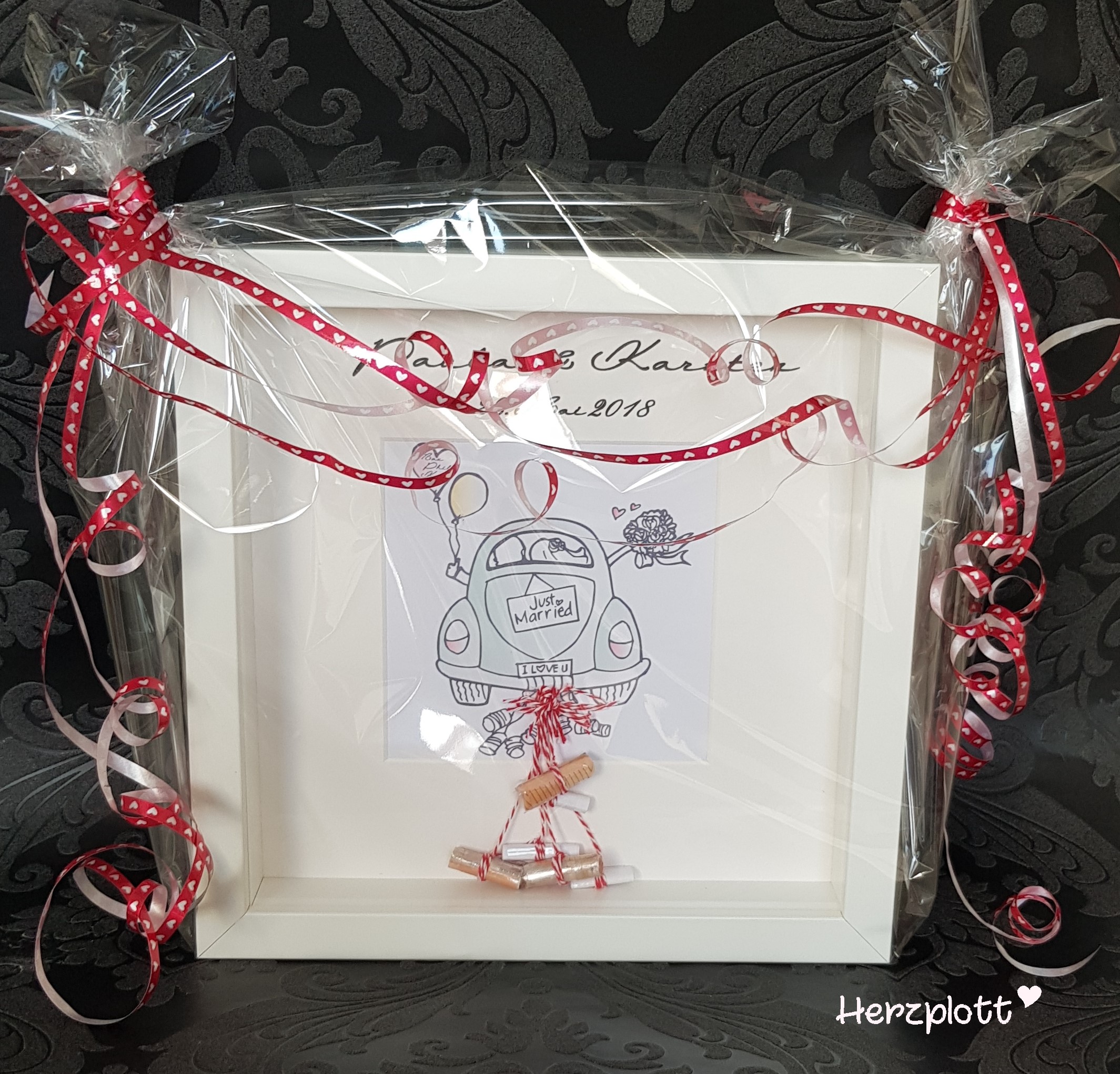 Bei diesem Rahmen habe ich auf das Passepartout die Namen nicht aufgeklebt, sondern mit dem Plotter schreiben lassen. Mit Hilfe der Pixscanmatte. Langsam taste ich mich an die gesamte Bandbreite der Funktionen des Plotters an! 😅