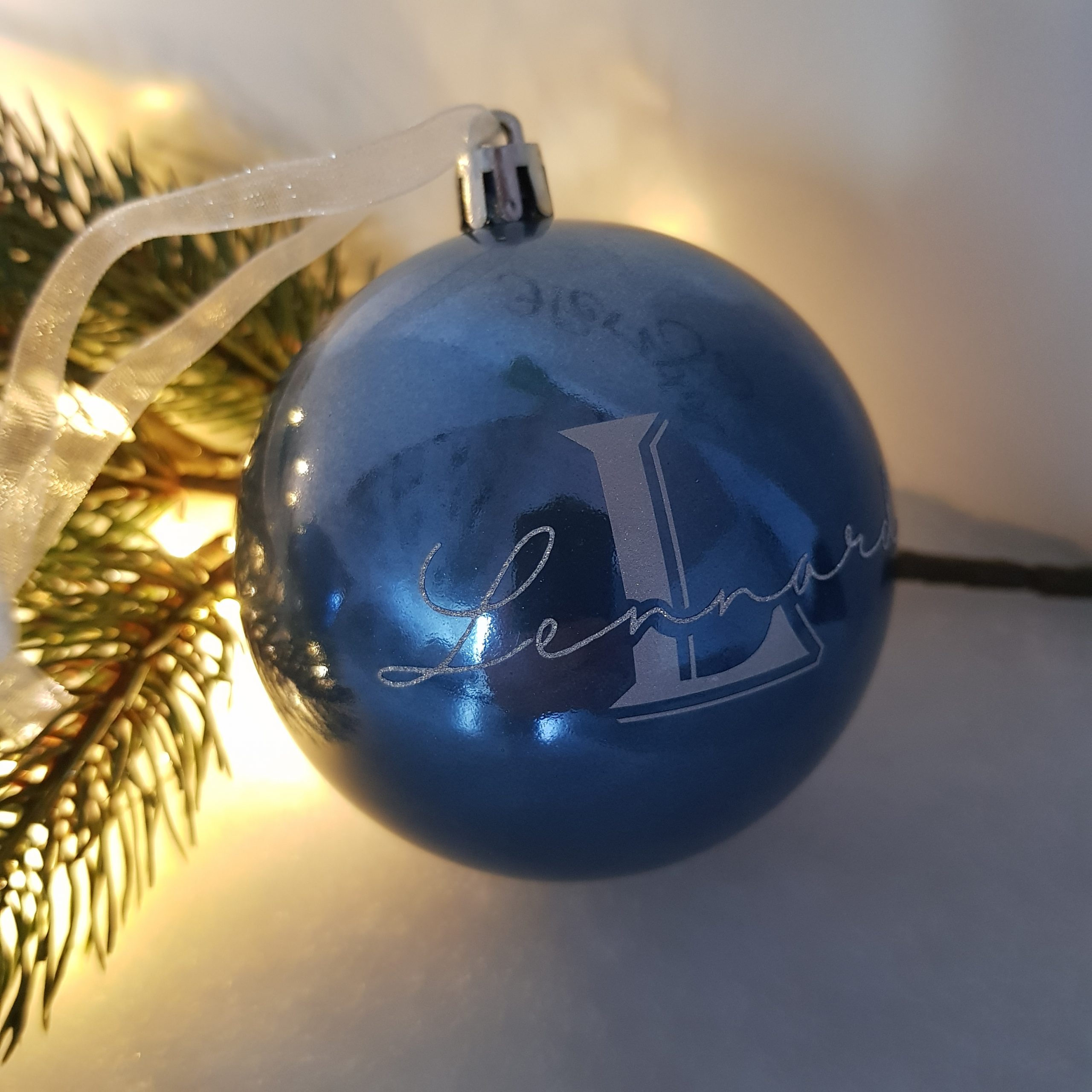 Diese großen blauen Kugeln werden dieses Jahr einen besonderen Platz am Baum von Emelys und Lennards Familie bekommen!